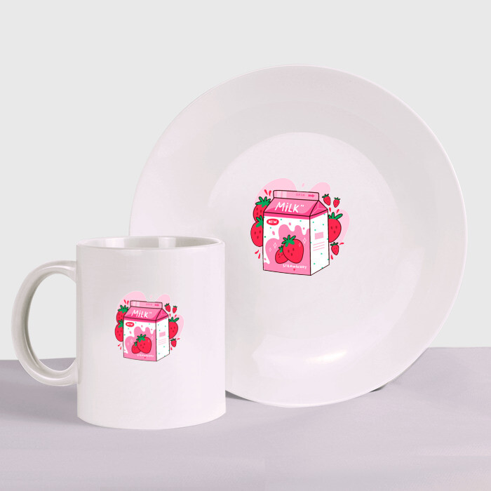 Набор: тарелка + кружка с принтом Клубничное молоко
