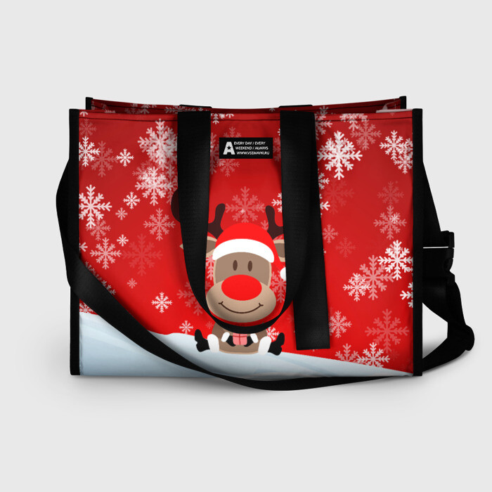 Сумка-шоппер 3D с принтом Новогодний Олень сидит в снегу.