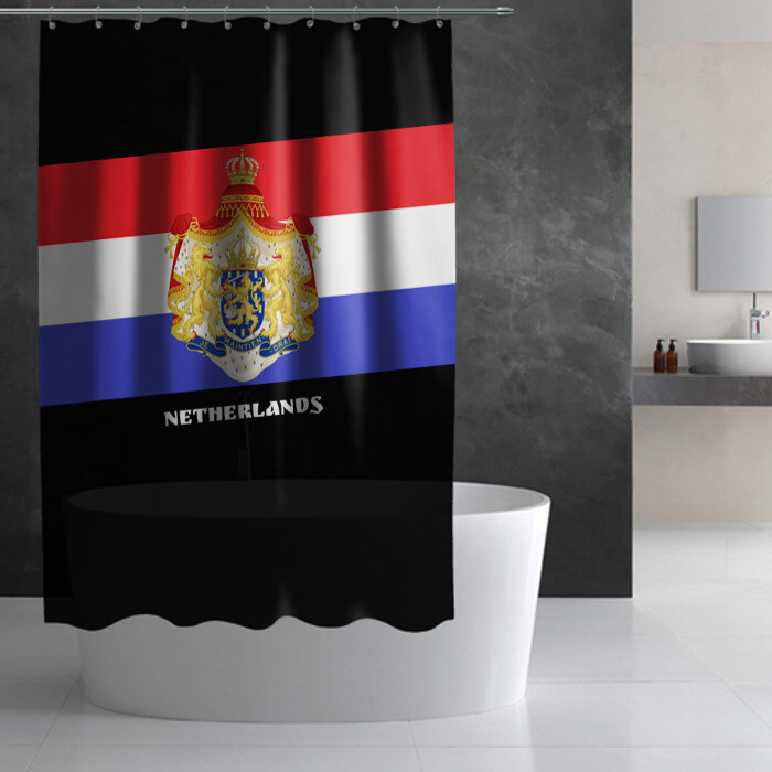 Штора 3D для ванной с принтом Флаг и герб Нидерланды
