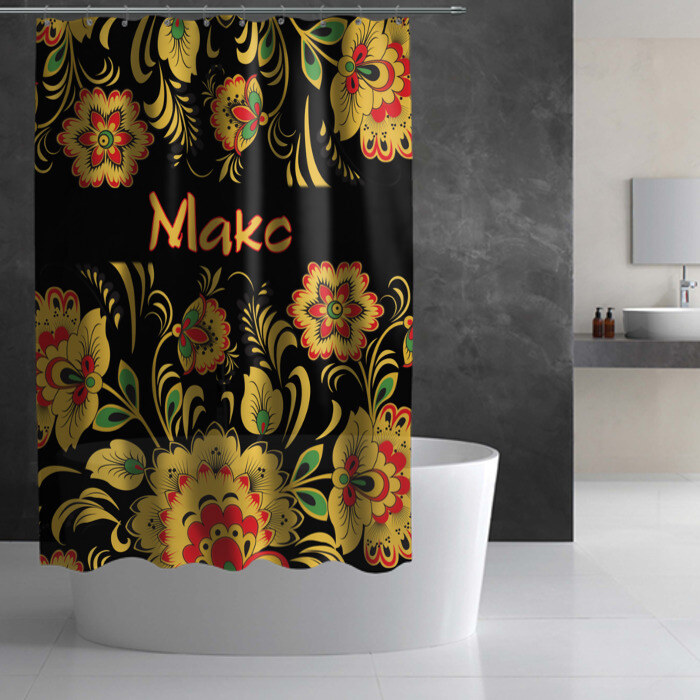 Штора 3D для ванной с принтом Макс, роспись под хохлому