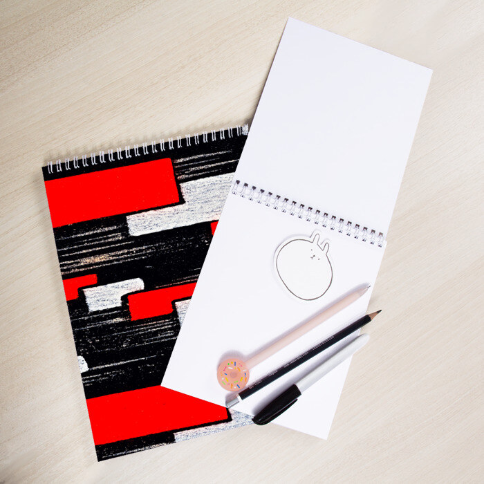 Скетчбук для рисования и записей в двух размерах: для любителей больших форматов — А4, для выбирающих компактность — А5. Листы матовые и белые, без линий, из более плотной бумаги, чем в обычном блокноте, чтобы они не промокали при рисовании фломастером. Всего в скетчбуке 48 листов, защищенных обложкой из мелованного плотного картона.