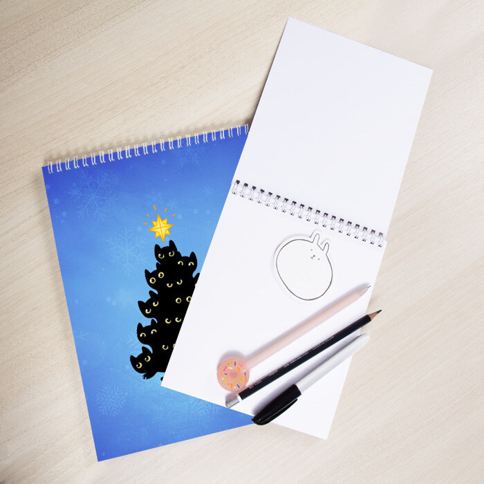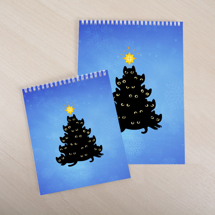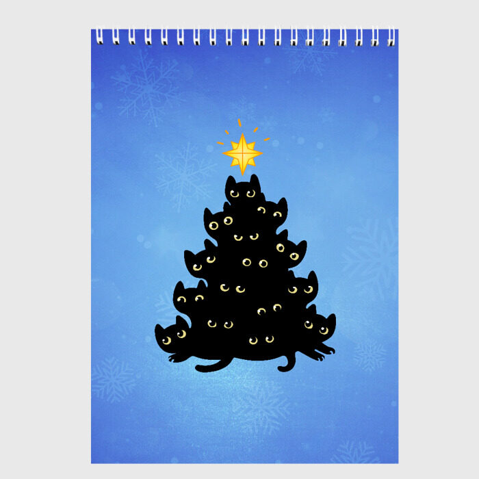 Скетчбук с принтом Кошачья ёлка