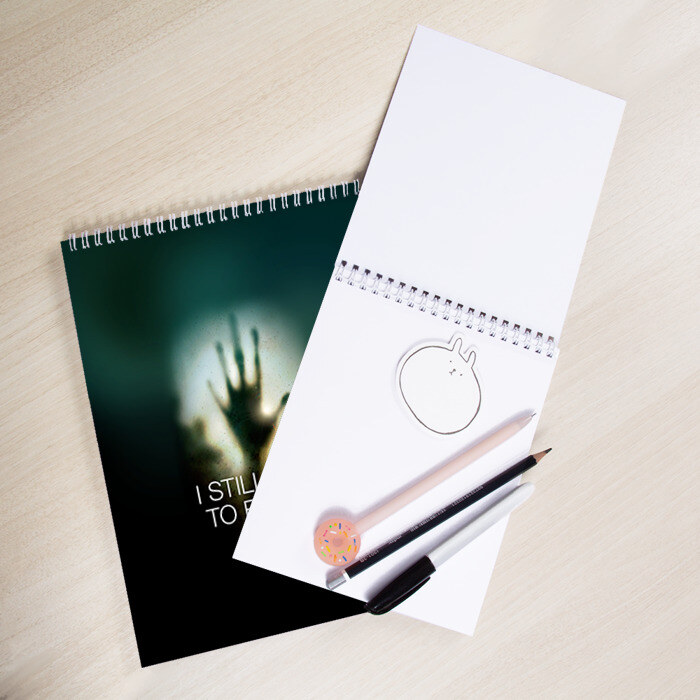 Скетчбук для рисования и записей в двух размерах: для любителей больших форматов — А4, для выбирающих компактность — А5. Листы матовые и белые, без линий, из более плотной бумаги, чем в обычном блокноте, чтобы они не промокали при рисовании фломастером. Всего в скетчбуке 48 листов, защищенных обложкой из мелованного плотного картона.