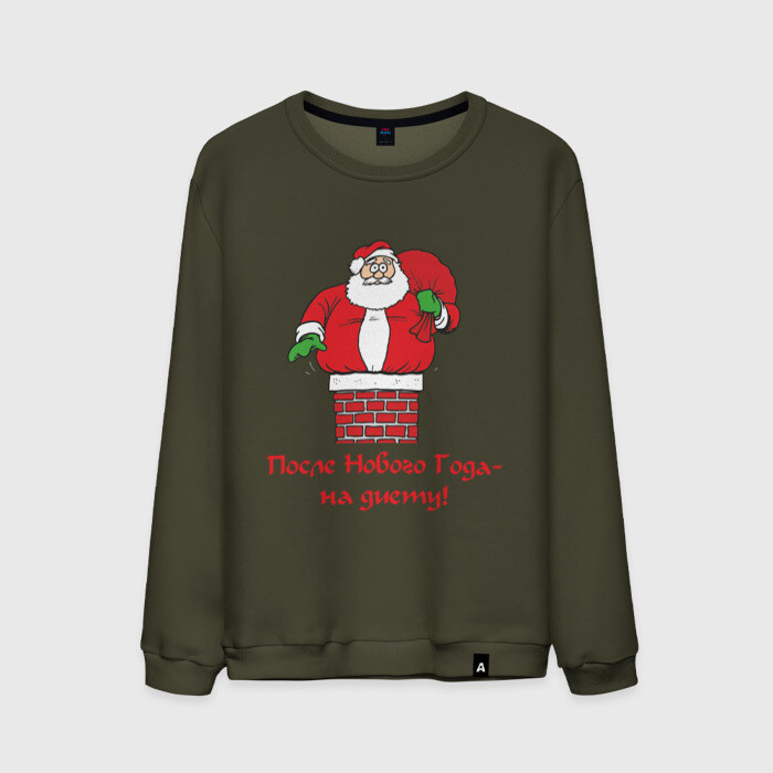 Мужской свитшот хлопок с принтом После нового года-на диету!
