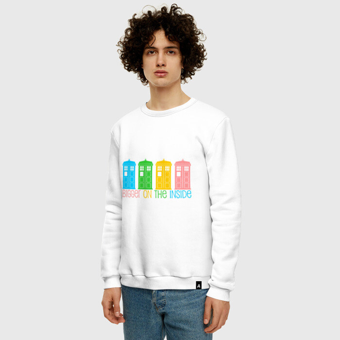 Мужской свитшот хлопок с принтом Тардис - большее внутри