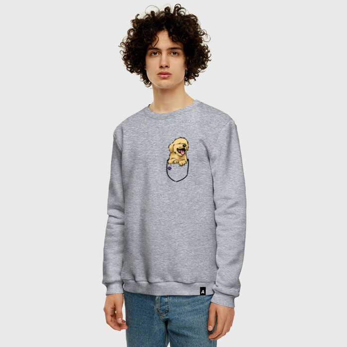 Мужской свитшот хлопок с принтом Собачка в кармане