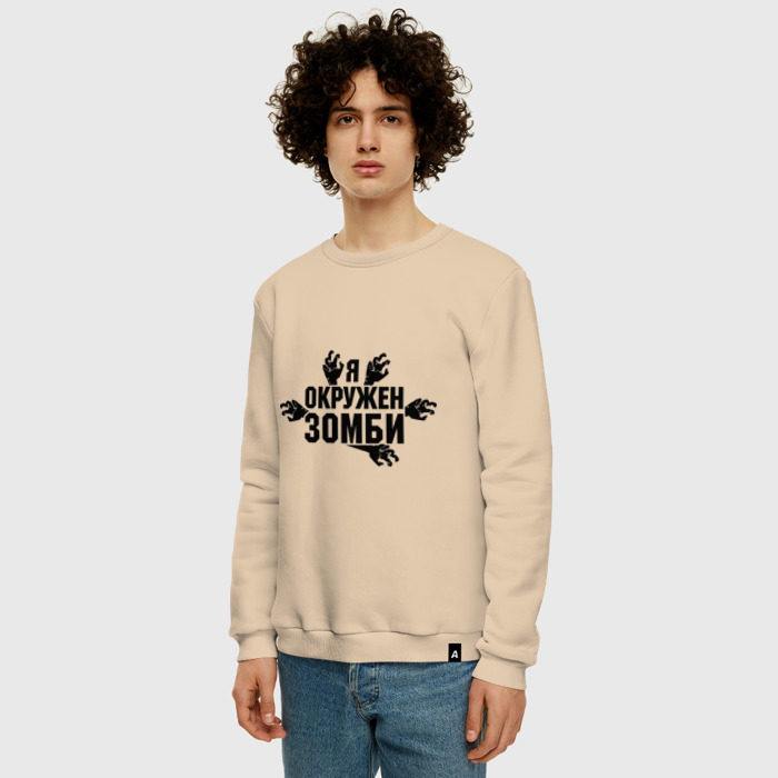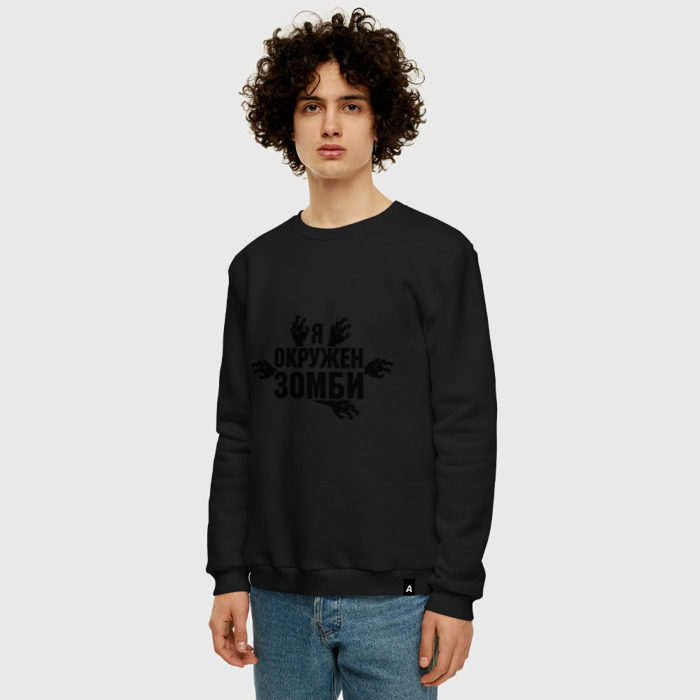 Мужской свитшот хлопок с принтом Я окружен зомби