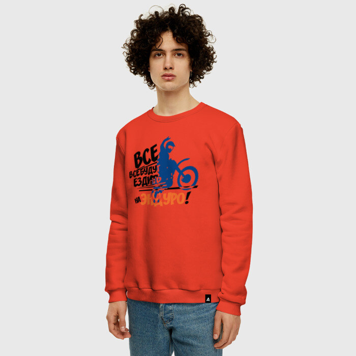 Мужской свитшот хлопок с принтом Все будут ездить на эндуро!