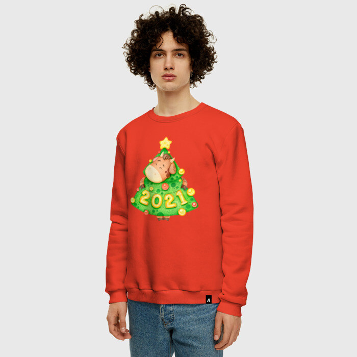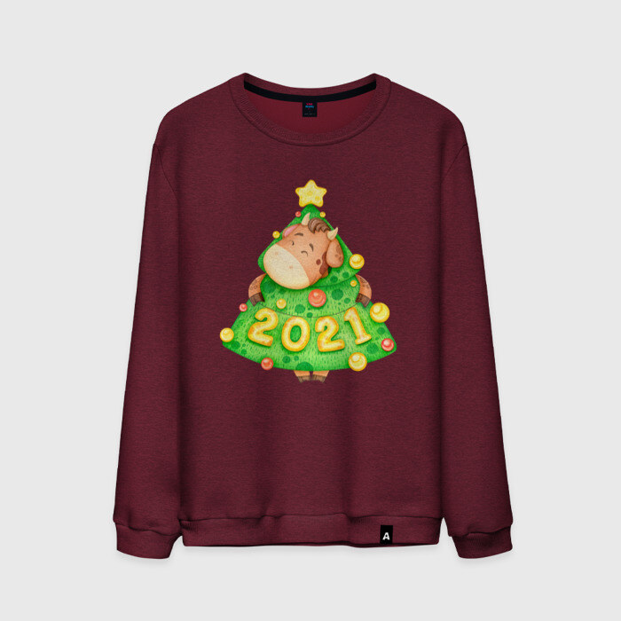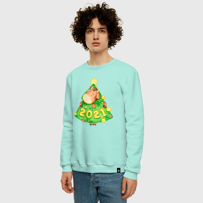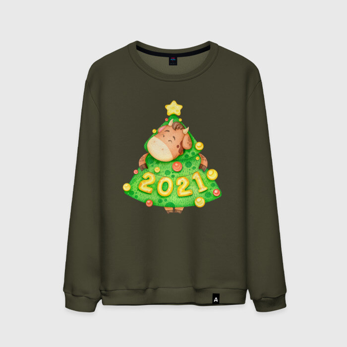 Мужской свитшот хлопок Год быка 2021 Елочка-бычок