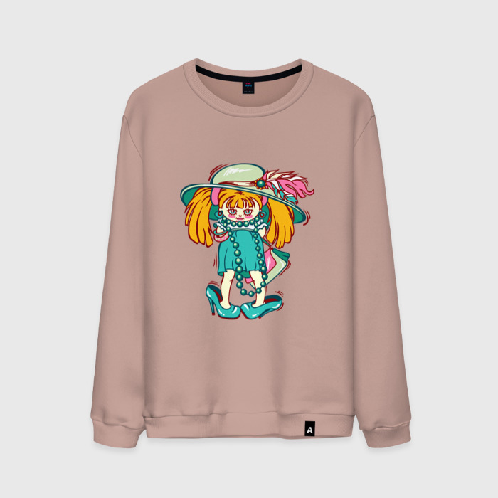 Мужской свитшот хлопок Грустная девочка в зеленом платье с желтыми волосами