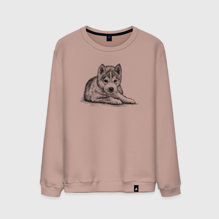 Мужской свитшот хлопок с принтом Щенок собаки хаски