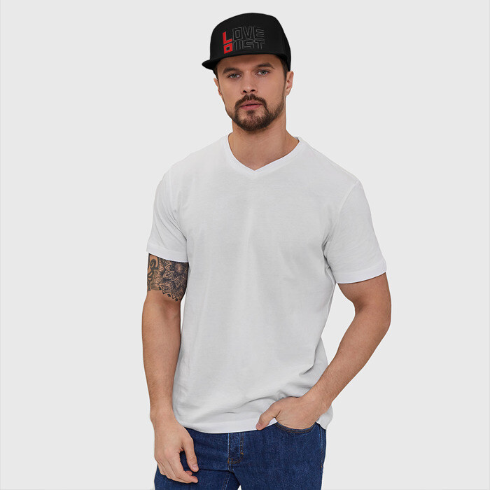 Снепбек — кепка с прямым козырьком. Принт наносится с помощью сольвентной печати, за счет чего долго держится на ткани и сохраняет цвета яркими. Можно сделать со своим дизайном.