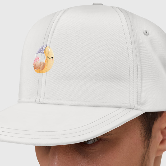 Кепка снепбек с прямым козырьком с принтом Мишка спит на месяце