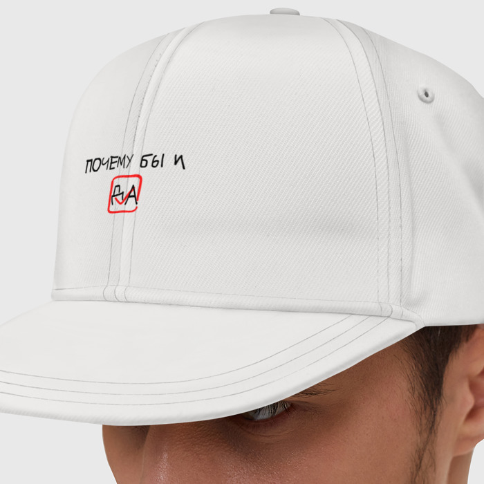 Снепбек — кепка с прямым козырьком. Принт наносится с помощью сольвентной печати, за счет чего долго держится на ткани и сохраняет цвета яркими. Можно сделать со своим дизайном.
