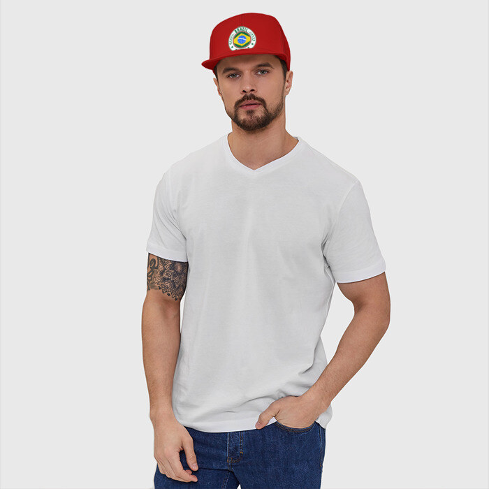 Снепбек — кепка с прямым козырьком. Принт наносится с помощью сольвентной печати, за счет чего долго держится на ткани и сохраняет цвета яркими. Можно сделать со своим дизайном.