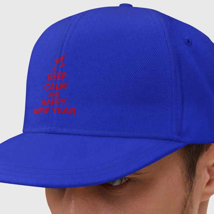 Кепка снепбек с прямым козырьком с принтом Keep calm and happy new year
