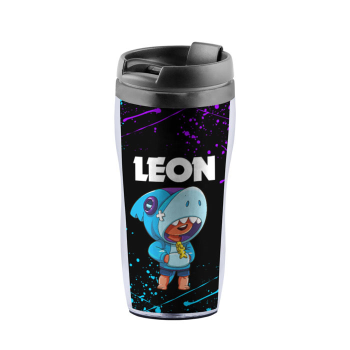 Термокружка-непроливайка с принтом BRAWL STARS LEON SHARK