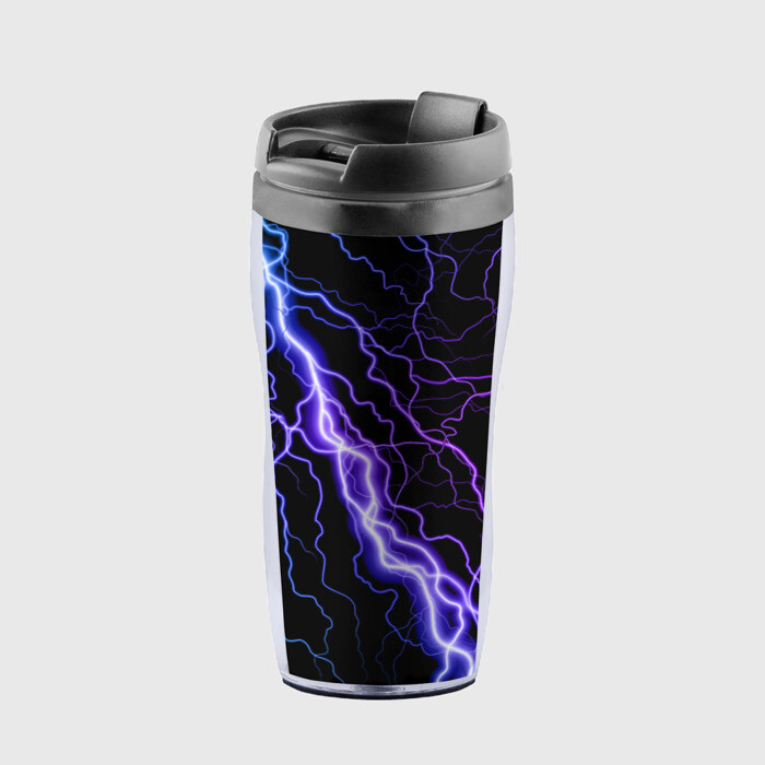 Термокружка-непроливайка с принтом НЕОНОВАЯ МОЛНИЯ ГРОЗА