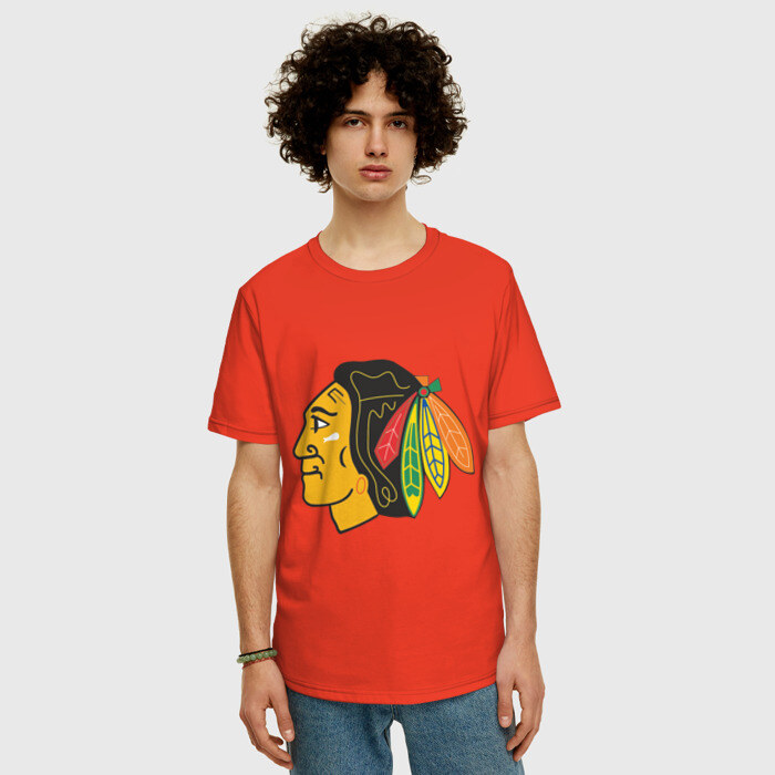 Мужская футболка хлопок Oversize с принтом Chicago Blackhawks