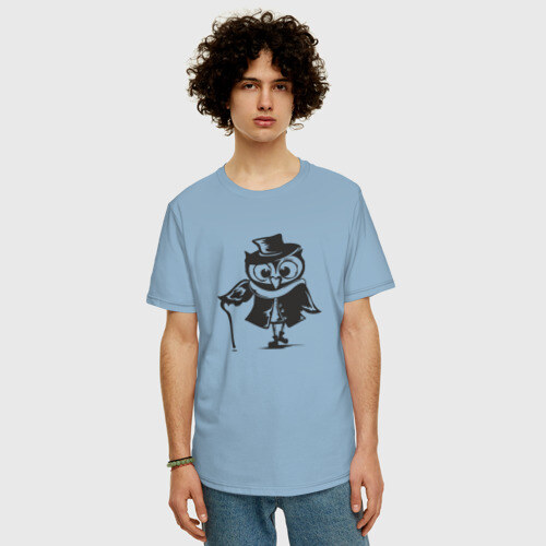 Мужская футболка хлопок Oversize с принтом Сова -Шерлок Холмс