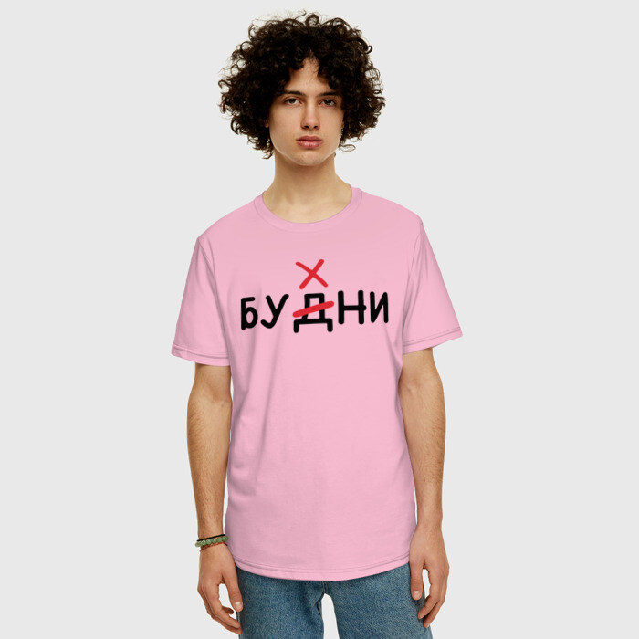 Мужская футболка хлопок Oversize с принтом Будни (Бухни)
