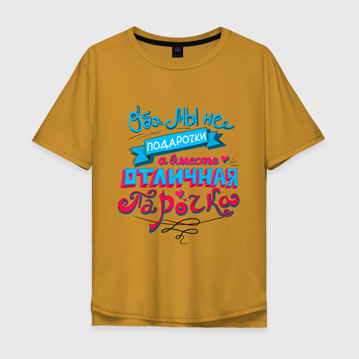 Мужская футболка хлопок Oversize с принтом Отличная парочка
