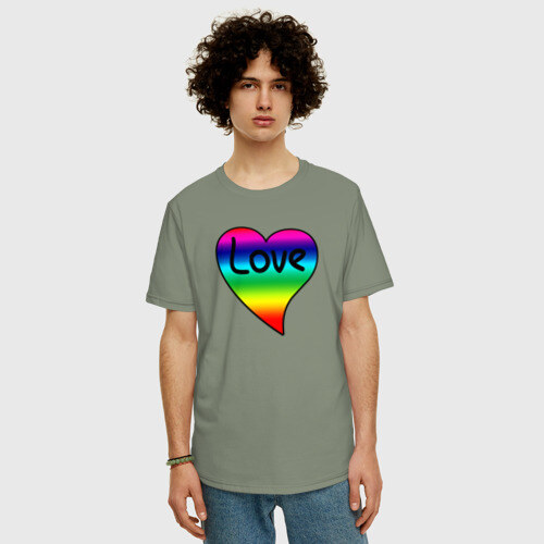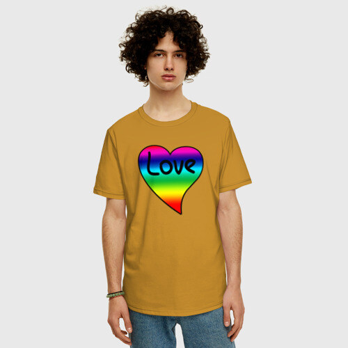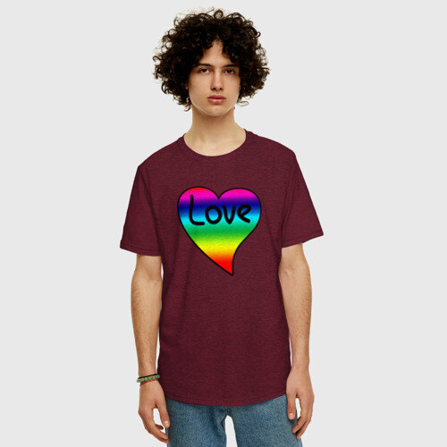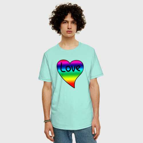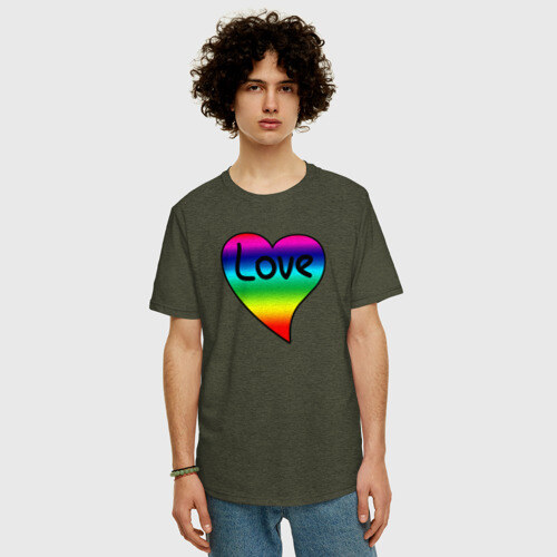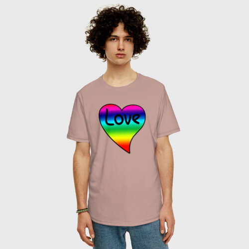 Мужская футболка хлопок Oversize с принтом Rainbow Love