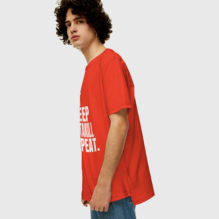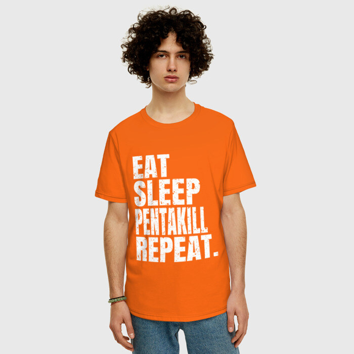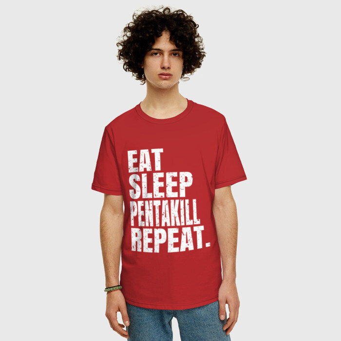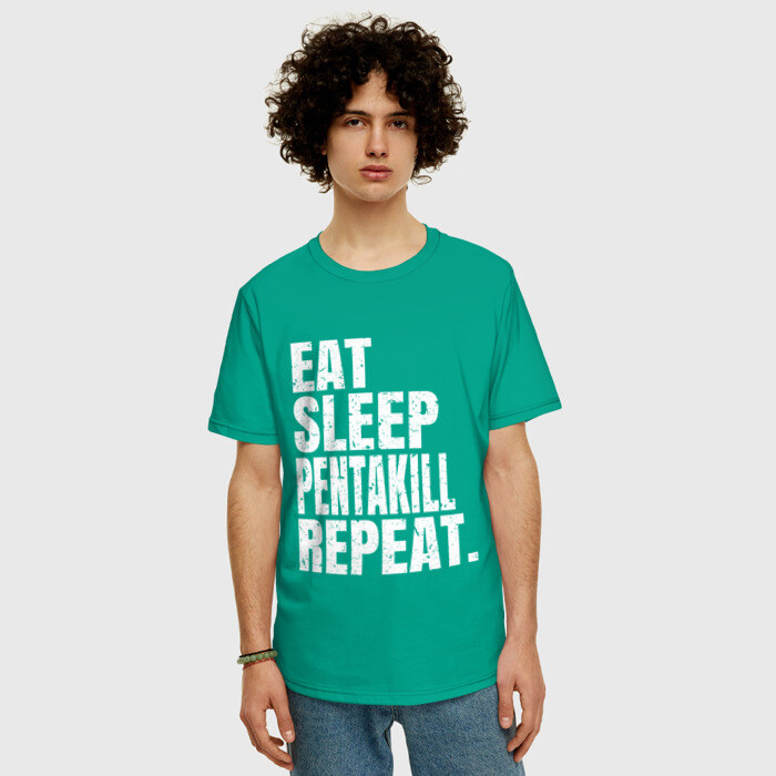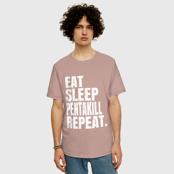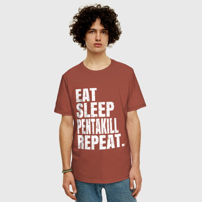 Мужская футболка хлопок Oversize EAT SLEEP PENTAKILL REPEAT