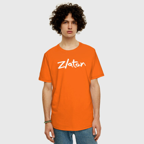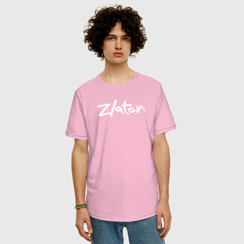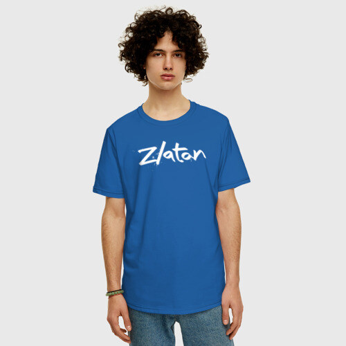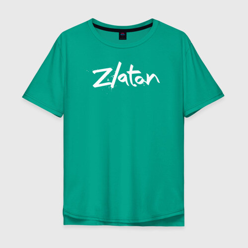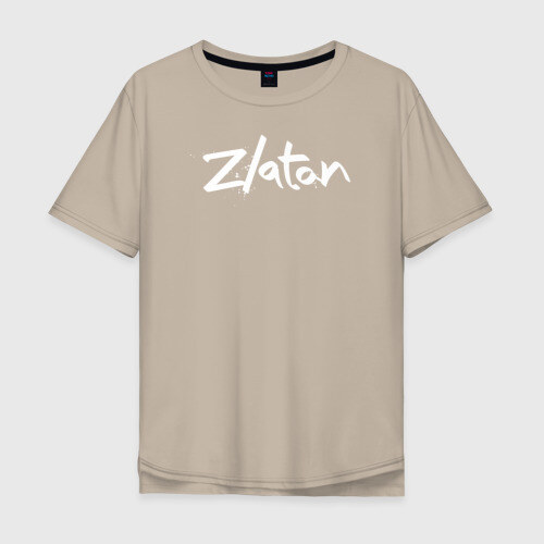 Мужская футболка хлопок Oversize с принтом Zlatan белое лого в брызгах