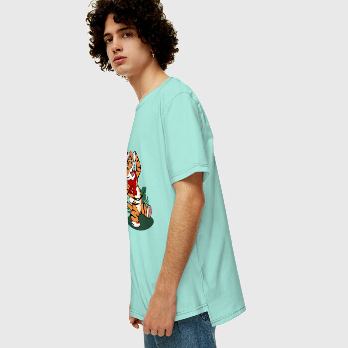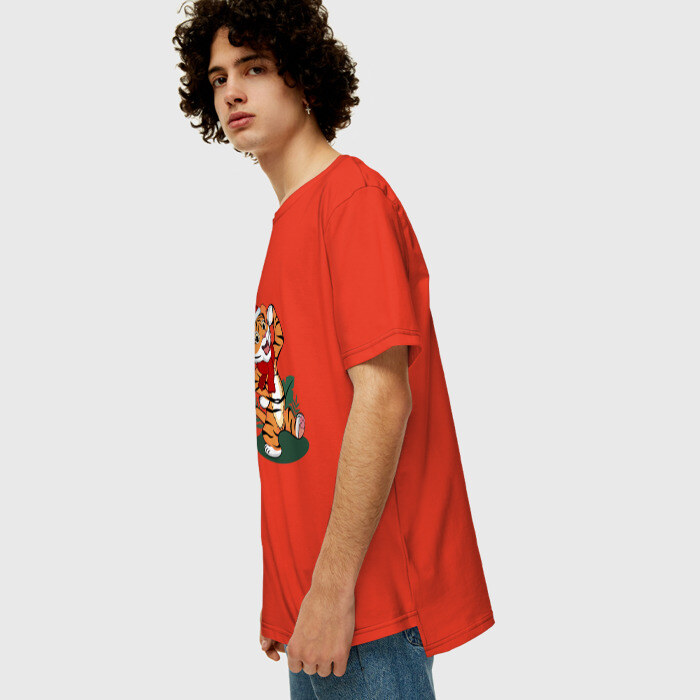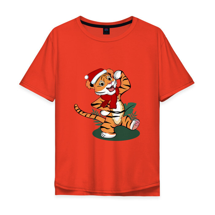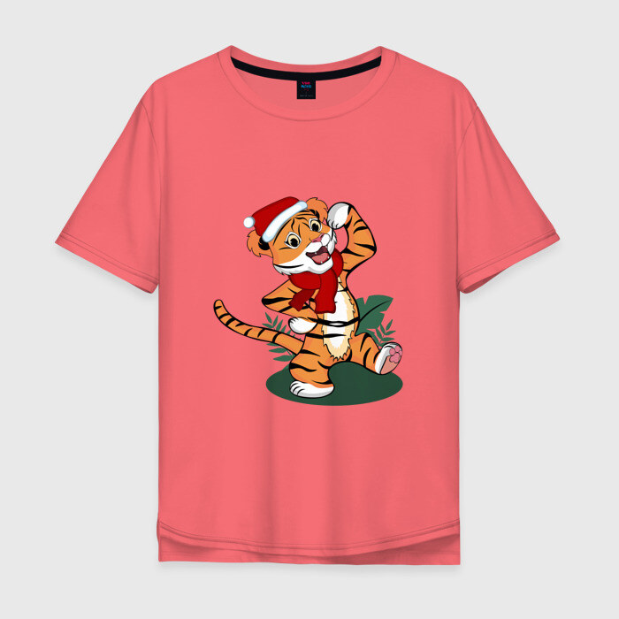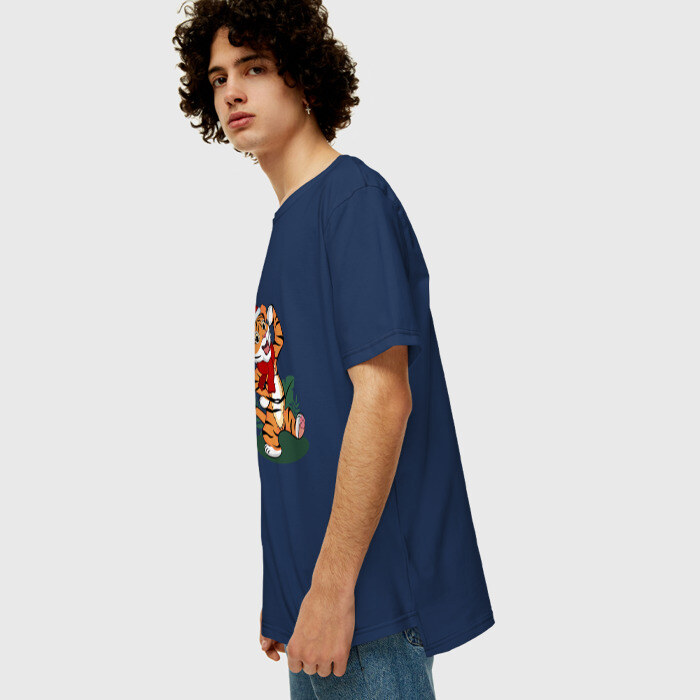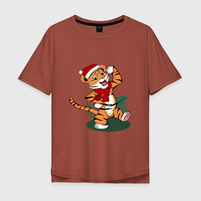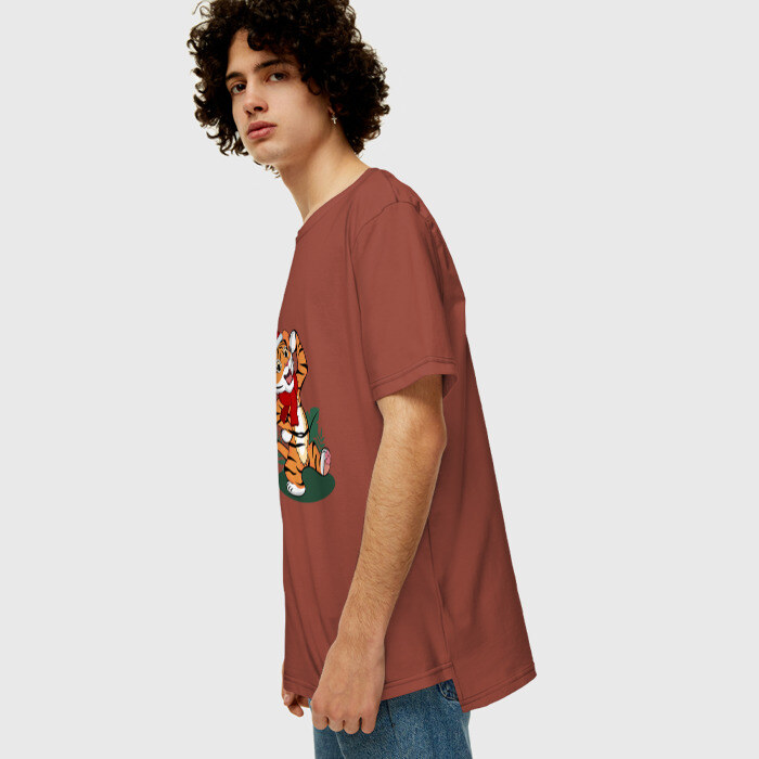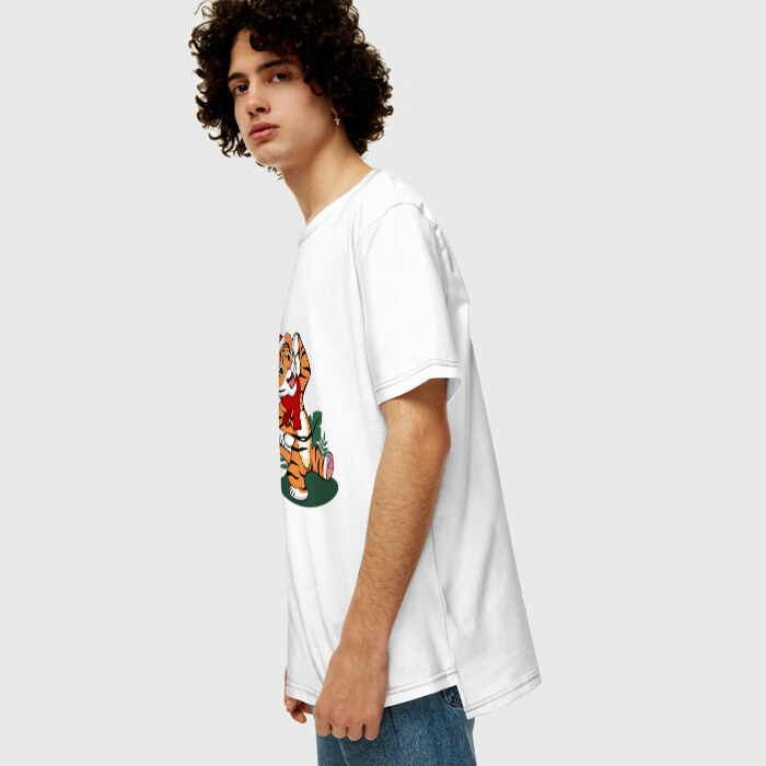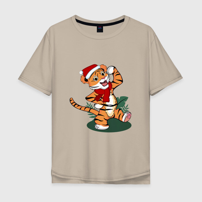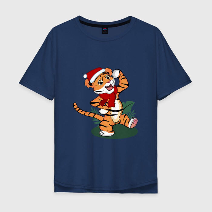Мужская футболка хлопок Oversize Новогодний тигр 2022