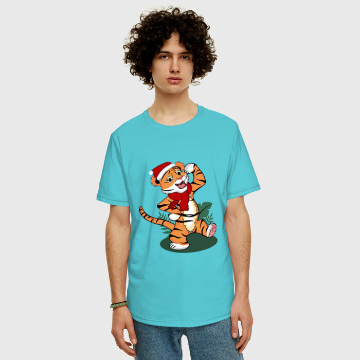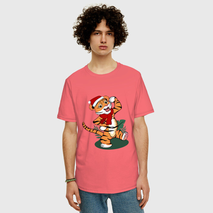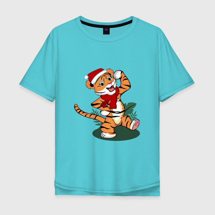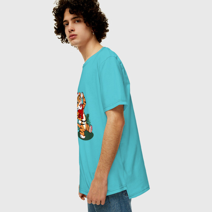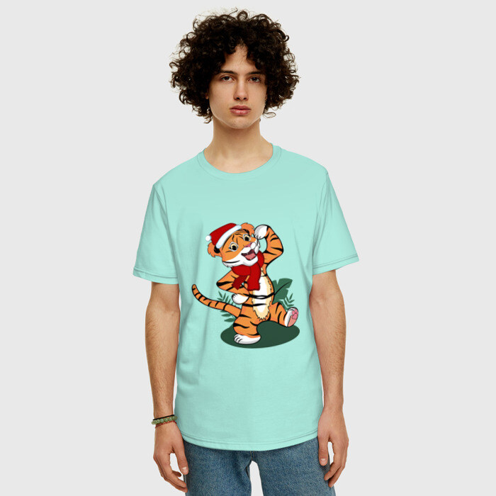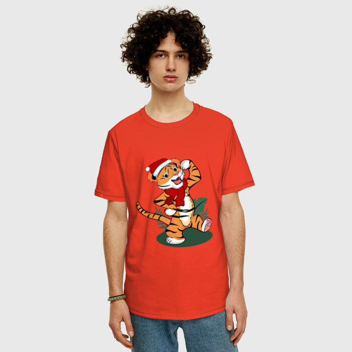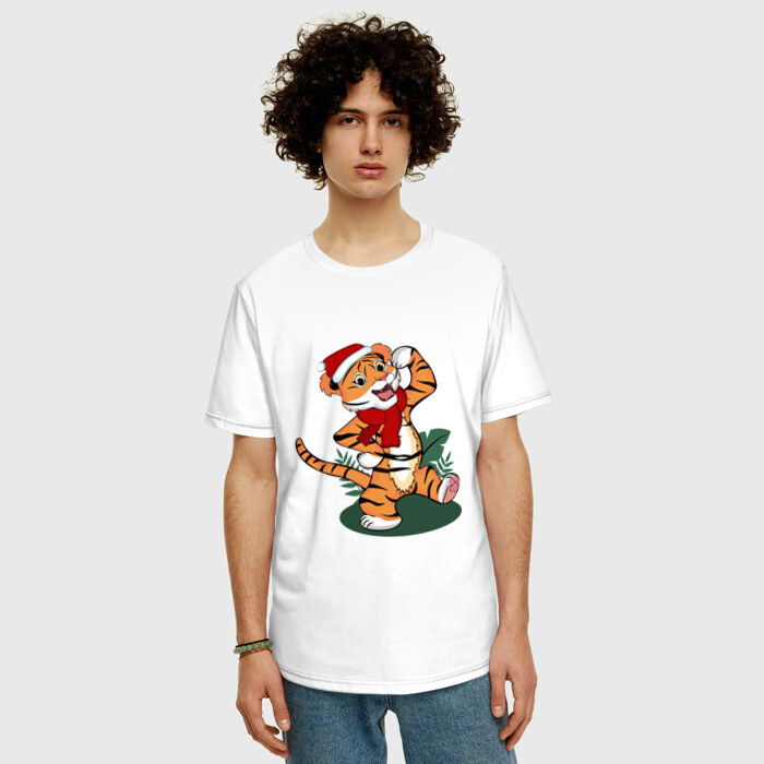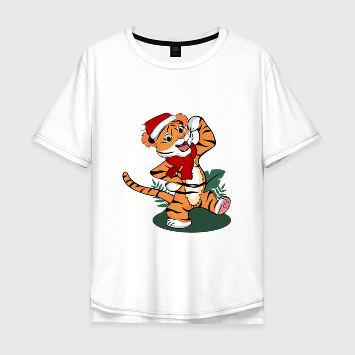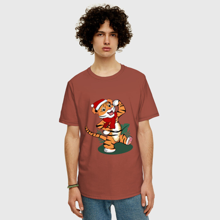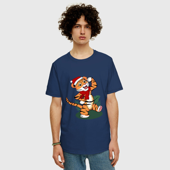 Мужская футболка хлопок Oversize с принтом Новогодний тигр 2022