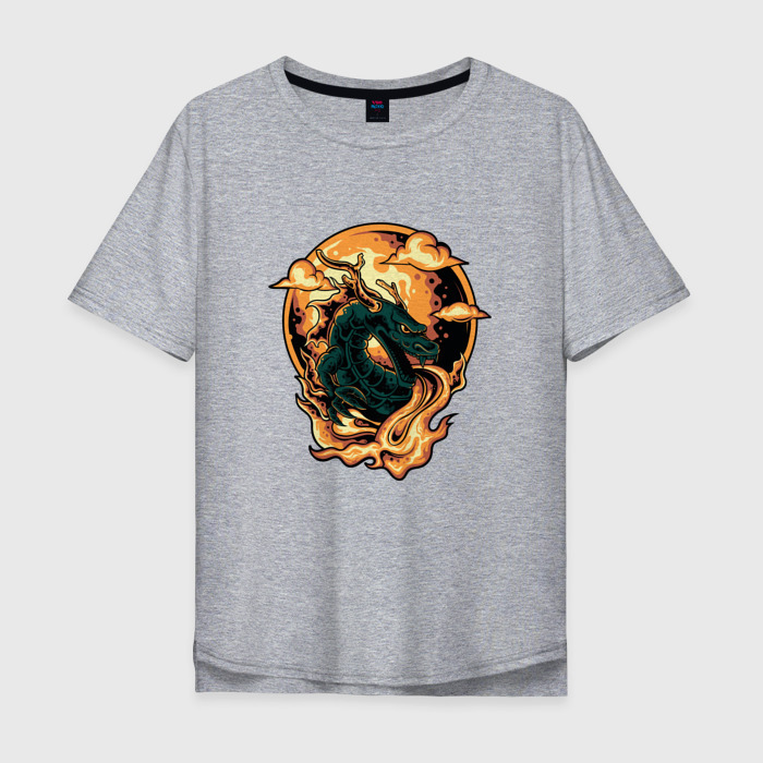 Мужская футболка хлопок Oversize с принтом Дракон в огне dragon on fire