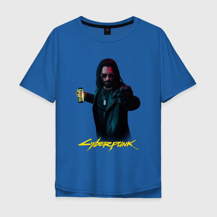 Мужская футболка хлопок Oversize Киано Ривз Cyberpunk 2077