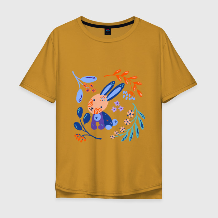 Мужская футболка хлопок Oversize с принтом Зайчик в скандинавском стиле