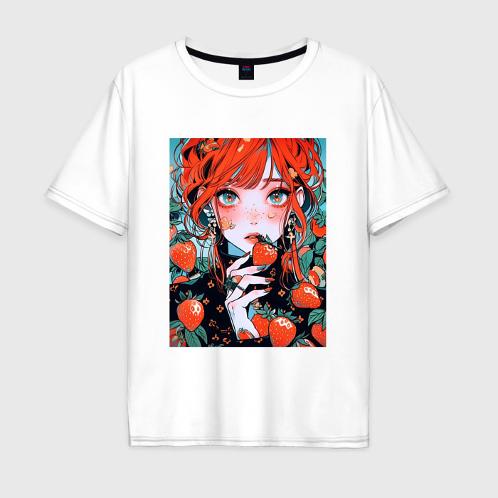 Мужская футболка хлопок Oversize с принтом Девушка с клубничками аниме