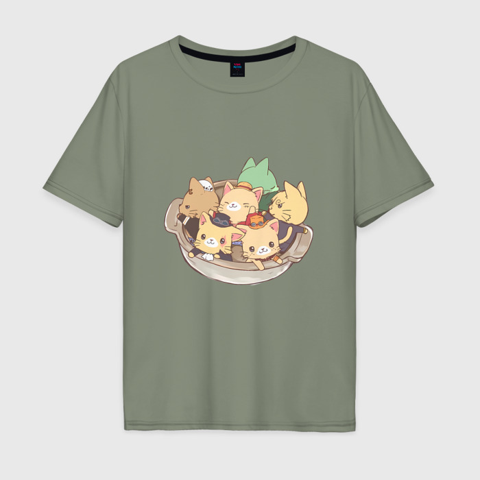 Мужская футболка хлопок Oversize Зоро Луффи коты
