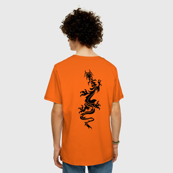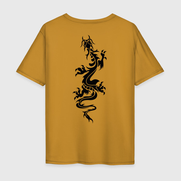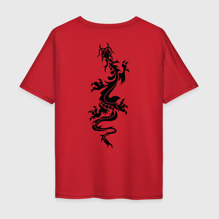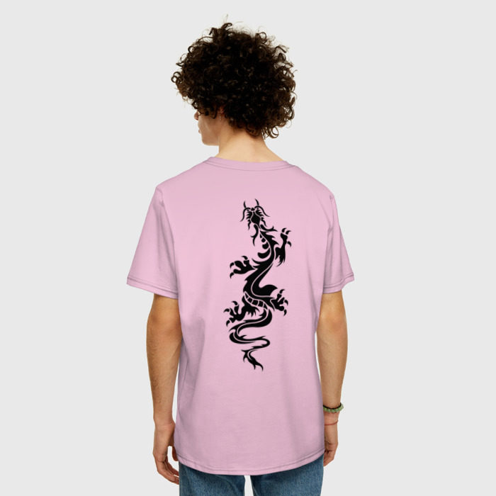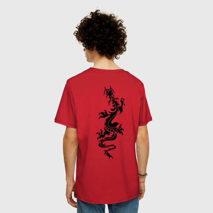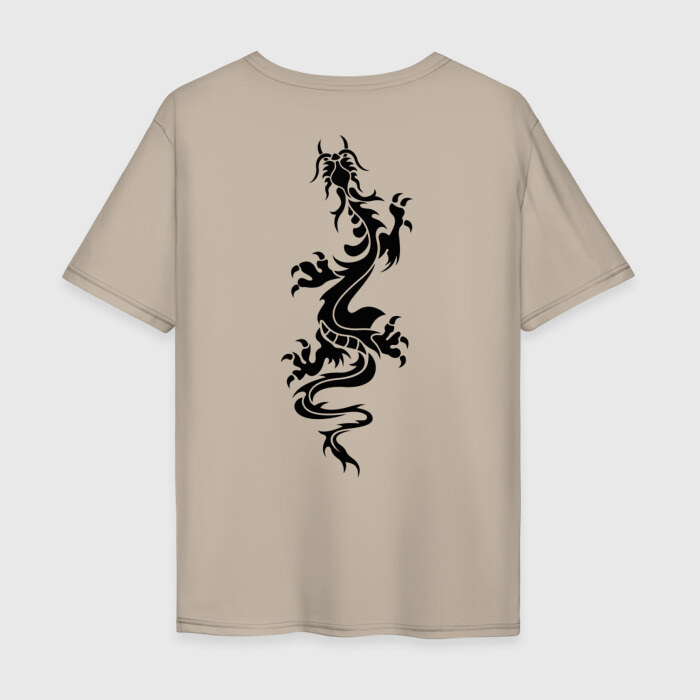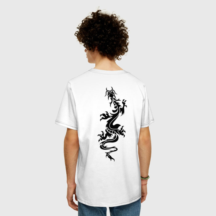 Мужская футболка хлопок Oversize с принтом Дракон на спине