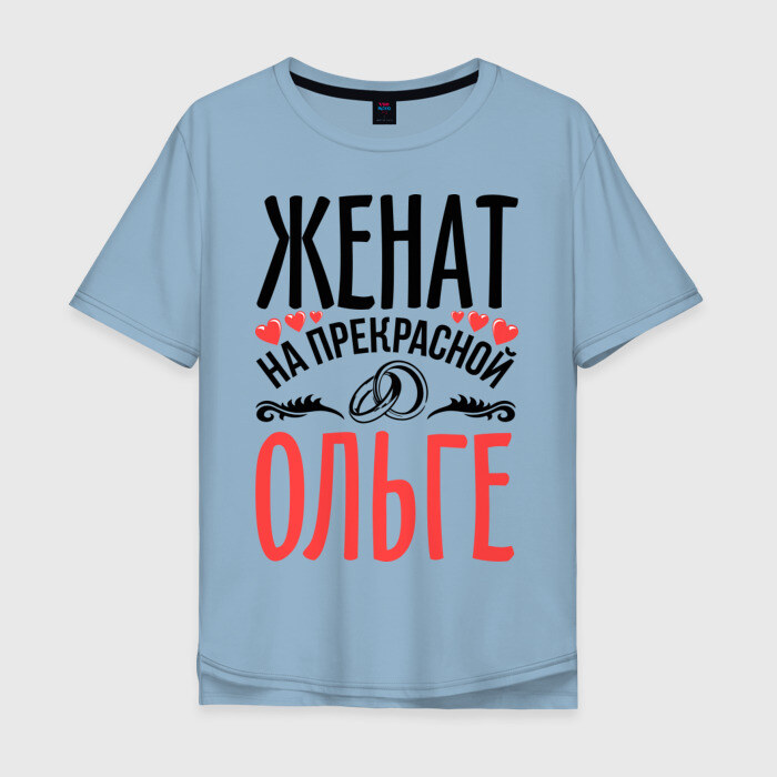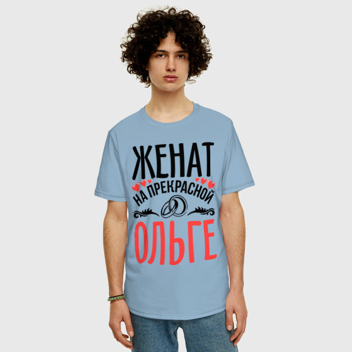 Мужская футболка хлопок Oversize с принтом Женат на Ольге