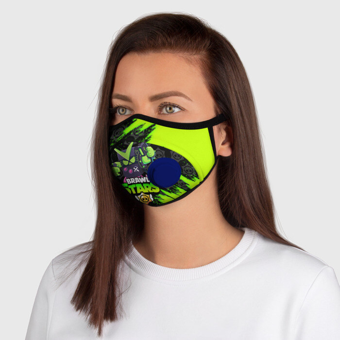 Маска из неопрена с принтом BRAWL STARS VIRUS 8-BIT | БРАВЛ СТАРС (Z)