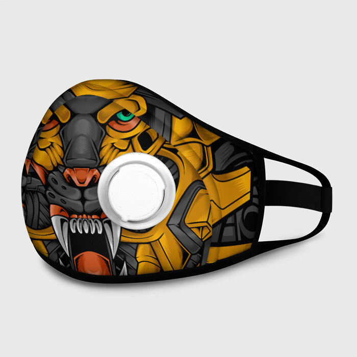 Маска из неопрена с принтом Хищный тигр киборг