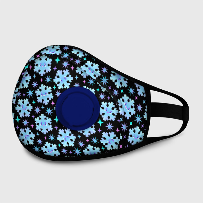Маска из неопрена с принтом Яркие зимние снежинки с цветными звездами