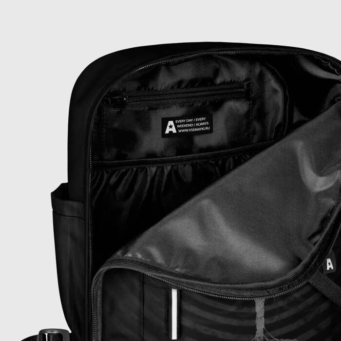 • лямки с регулируемой длиной, сверху ручки, чтобы рюкзак нести как сумку. Основное отделение закрывается на молнию, как и внешний карман. Внутри два дополнительных кармана, один из которых закрывается на молнию. По бокам два дополнительных кармашка, куда поместится маленькая бутылочка