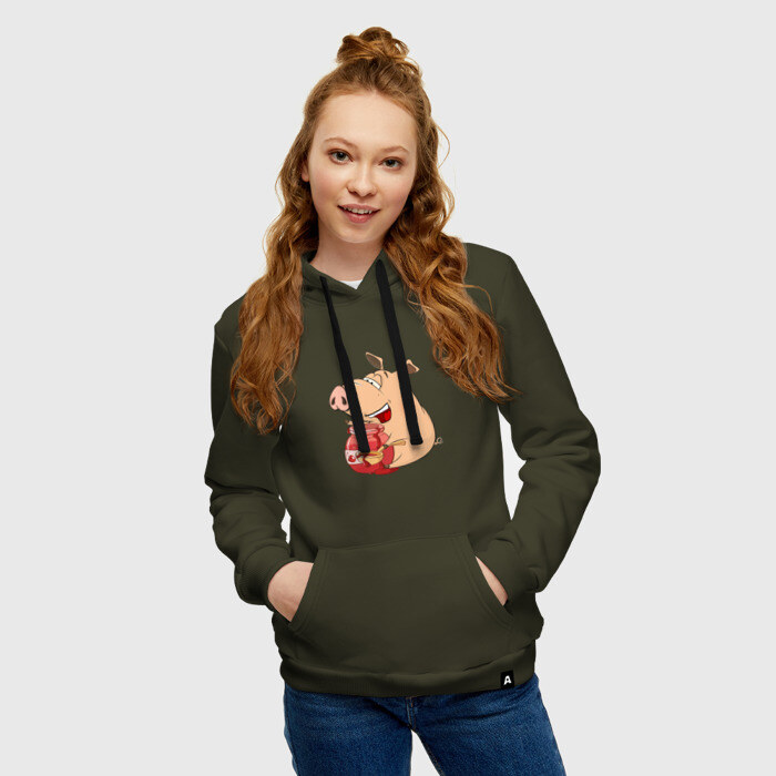 Женская толстовка хлопок с принтом Свинка ест вишневое варенье