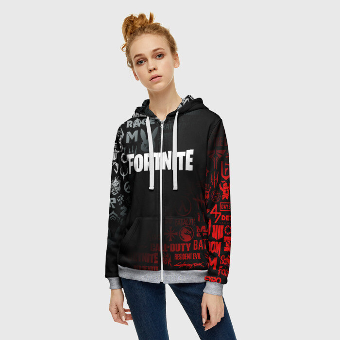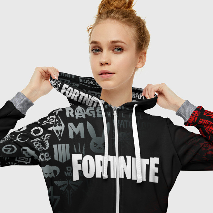 Женская толстовка 3D на молнии FORTNITE 10 СЕЗОН