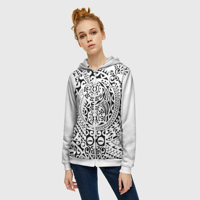 Женская толстовка 3D на молнии с принтом Узор на белом