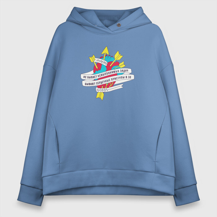 Женское худи Oversize хлопок Эмблема трудоголиков