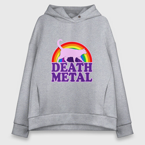 Женское худи Oversize хлопок с принтом Death Melal Cat