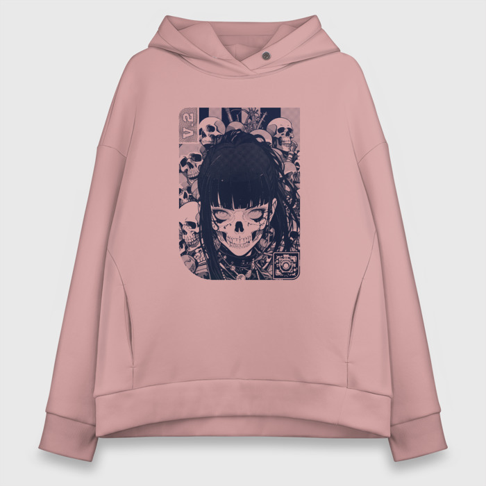 Женские худи Oversize хлопок КИБЕРНЕТИЧЕСКАЯ ДЕВУШКА СКЕЛЕТ