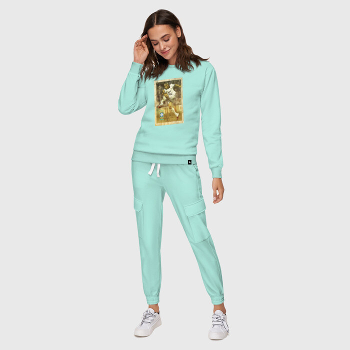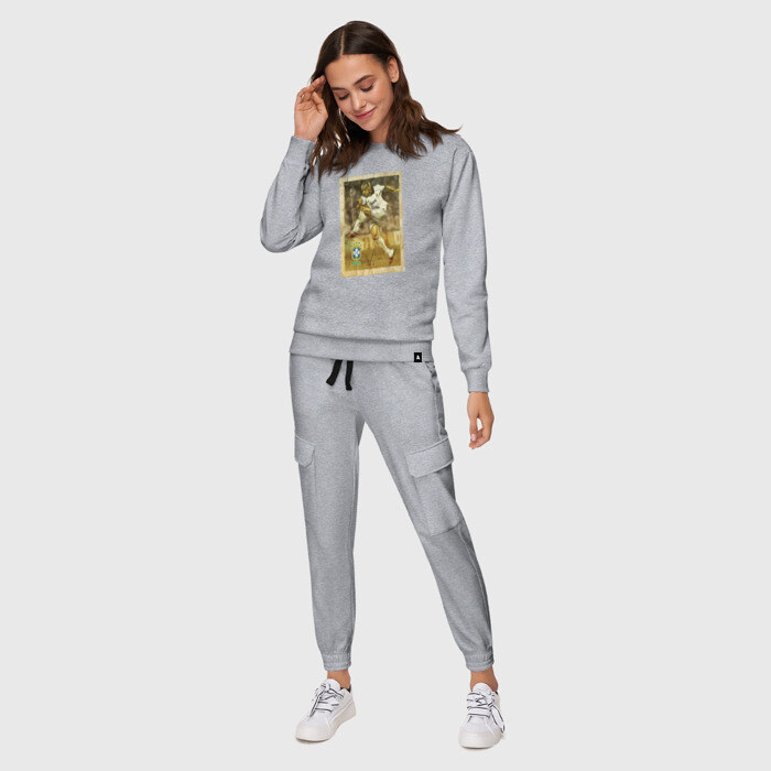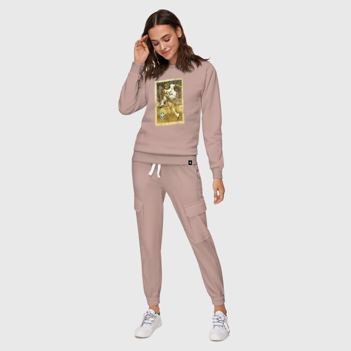 Костюм из мягкого хлопка с мягким и теплым начесом внутри. Базовая вещь в гардеробе, которую можно сочетать с другими вещами: например, брюки надеть с другой футболкой, верх носить отдельно. Пара выполнена из хлопка одного цвета, а брюки сшиты из той же ткани, что и базовый хлопковый свитшот . Брюки на поясе фиксируются не только широкой трикотажной резинкой, но и дополнительными завязками. Принт наносится только на свитшот. Можно заказать как со своим дизайном, так и вообще без него.