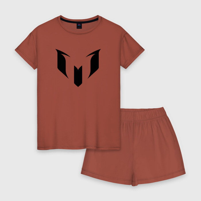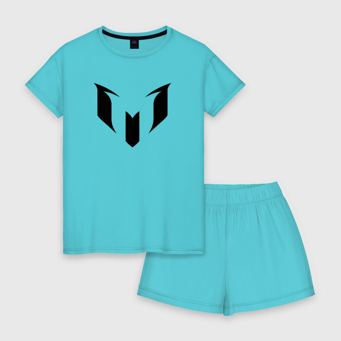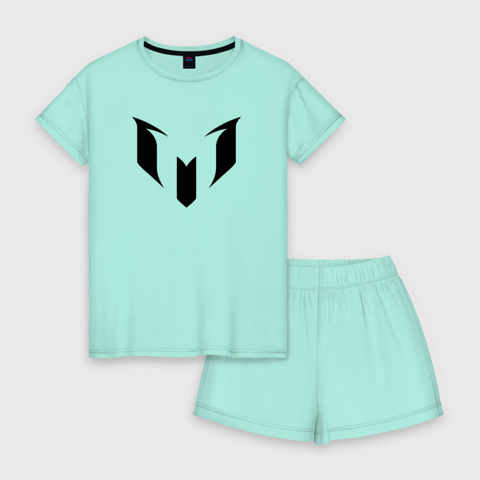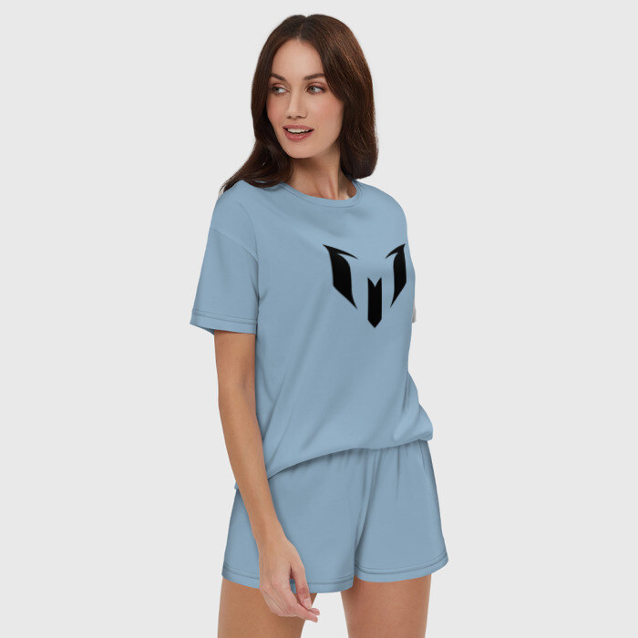 Женская пижама с шортиками хлопок с принтом Месси (черная)